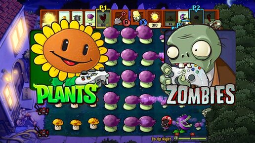 Plants vs. Zombies [XBOX 360] [2 Player] Survival Night Gameplay