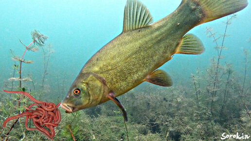 Поклёвка Линя на Пучок Червей! Крабовые палочки под водой