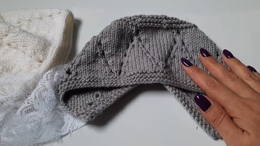 Шапочка чепчик для малышей от 3х месяцев, вязание спицами МК