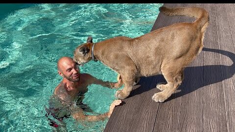 "Месси в стрессе" - реакция пумы на прыжок хозяина в бассейн