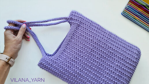 Сумка "Алиса" крючком из полиэфирного шнура. Простой вязаный шопер.