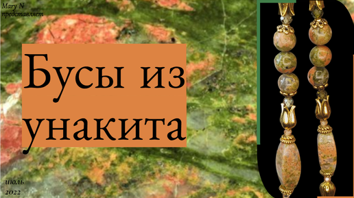 Бусы из унакита и фианитов в ярком золоте