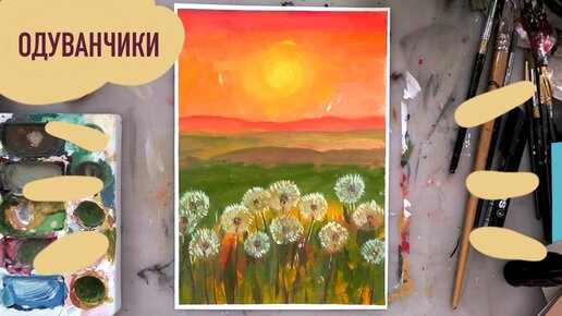 Как нарисовать одуванчики красками гуашью, пошаговый урок для детей и взрослых