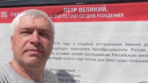 Геннадий Горин в парке снял видео про плакаты Пётр Великий. Городской парк, город Орёл