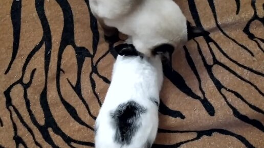 Кот моет кролика