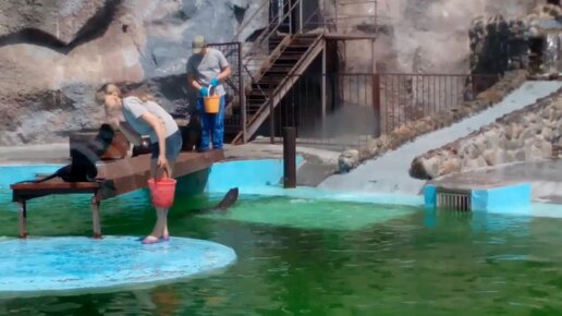 В ижевском зоопарке морские котики в ответ на кормление исполняют трюки