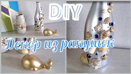 Идея декора бутылки ракушками привезенных с моря. / DIY Home Decor Ideas.