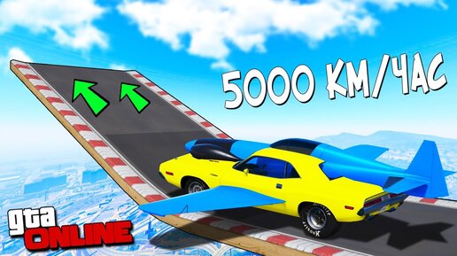 КАК ДАЛЕКО ЛЕТАЮЩАЯ МАШИНА УЛЕТИТ С ОГРОМНОГО ТРАМПЛИНА НА СКОРОСТИ 5000 КМ/ЧАС? ГТА 5 МОДЫ!