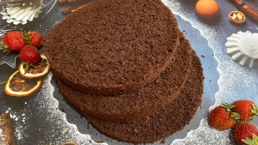 Рецепт торта. Воздушный и нежный шоколадный бисквит. Готовится легко, без разделения яиц на белки и желтки.