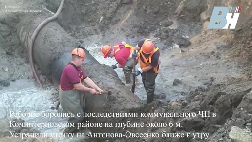 Рабочие боролись с последствиями коммунального ЧП в Коминтерновском районе на глубине около 6 м
