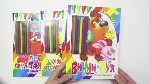 Чёрная раскраска с разноцветными мелками "Чебурашка", "Принцессы", "Винни Пух", ИД "АСТ"