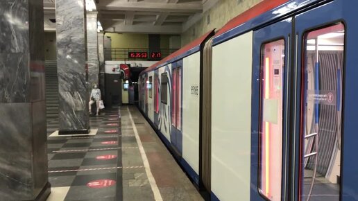 Метропоезд 81-765/766/767 "Москва" отправляется со станции Сокольники