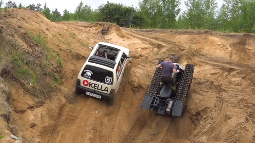 Парень на уникальной Оке разрывает гусеничный вездеход на бездорожье.