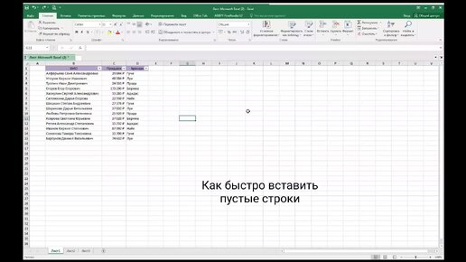 Как в Excel быстро вставить пустые строки?