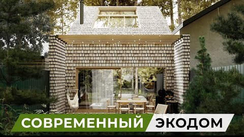 Небольшой современный дом из дранки со стеклянным атриумом | Обзор на tiny house в лесу