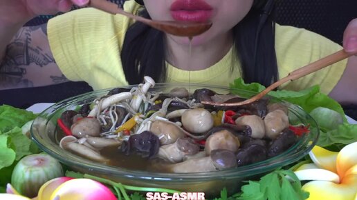 ASMR ЭНОКИ ШИТАКЕ ШАМПИНЬОНЫ ГРИБНОЙ СУП ПО-ТАЙСКИ (ЗВУКИ ЕДЫ) ЛЕГКИЙ ШЕПОТ SAS-ASMR