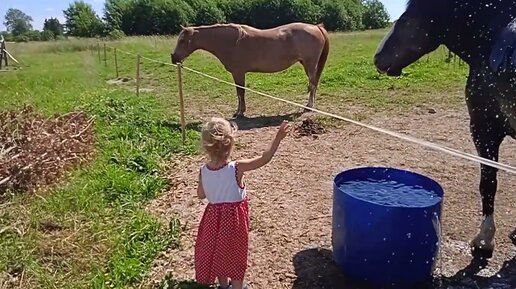 Яну поливают из шланга, она счастлива!