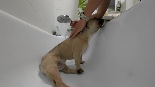 Французский Бульдог. Батошка очень любит купаться, тем более в такую жаркую погоду.