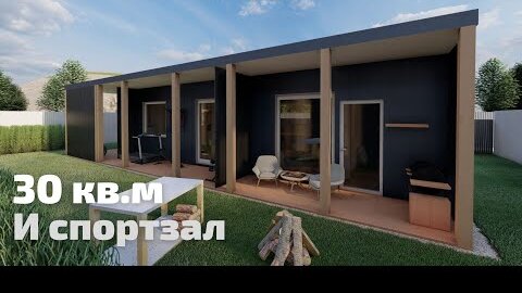 Дом с тренажерным залом, на заднем дворе