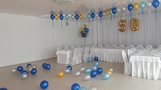 Украшение шарами зала на юбилей. фонтан из шаров