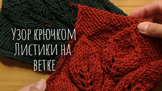 УЗОРЫ крючком как спицами - НУКИНГ, убавки с наклоном вправо и влево - Узор листики на ветке