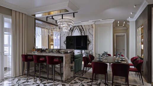 Динамичный современный интерьер с элементами неоклассики и арт-деко.
