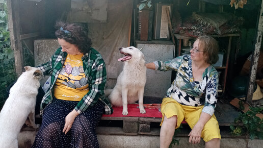 Мы с Валей сидим на троне, а возле нас кружатся Умка с мамой Бусинкой