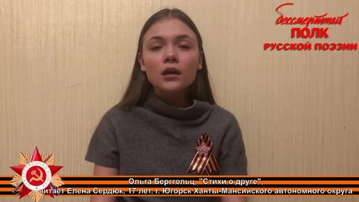 Ольга Берггольц, "Стихи о друге", читает Елена Сердюк, 17 лет, г. Югорск
