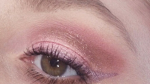 Розовый макияж глаз с сиреневой стрелкой бюджетной косметикой