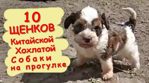 Банда на прогулке, щенки китайской хохлатой собаки
