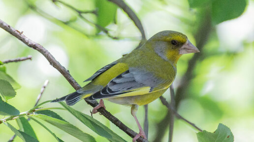 Встреча зеленушки и щегла на водопое.