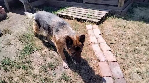 Пёсик Лордик уже самостоятельно ходит по двору приюта