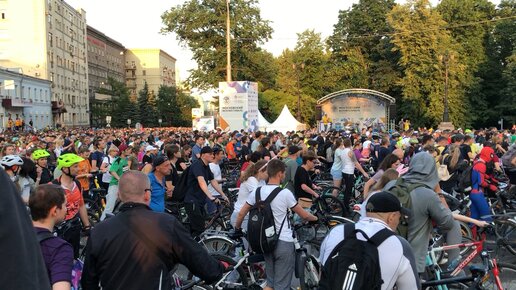 Большое колличество участников приехали на веломарафон 20 км по ночной Москве