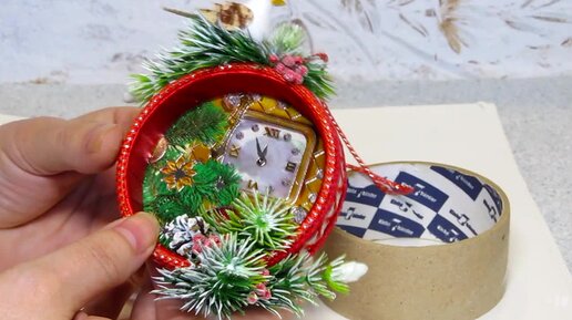 Часы из бобины от скотча. Игрушка на ёлку.