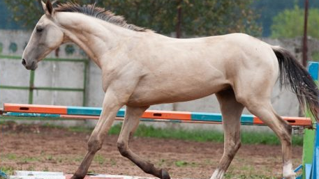 Любуемся 3-х летним золотисто-буланым ахалтекинцем: дорогой жеребец