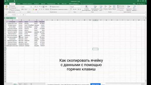 Как в excel с помощью горячих клавиш скопировать ячейку с данными?