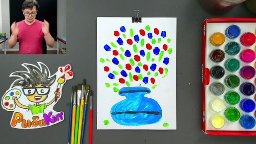 Как нарисовать букет цветов в вазе - рисунки красками для школы