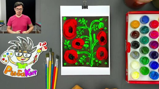 Урок рисования для детей - рисуем маки цветы