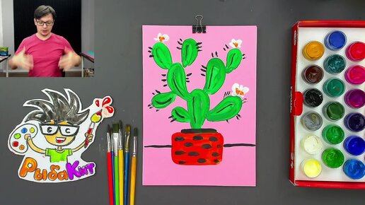 Уроки рисования для детей - рисуем Кактус красками гуашь с РыбаКит