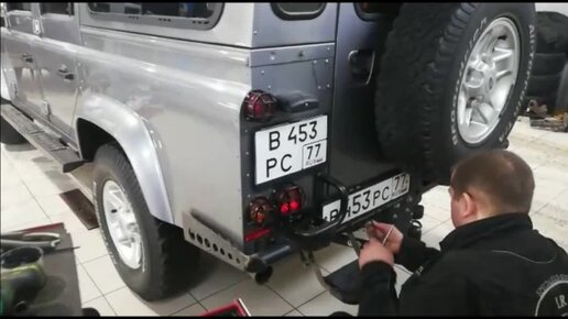 Установка квадратной рамки под номер на Дефендер