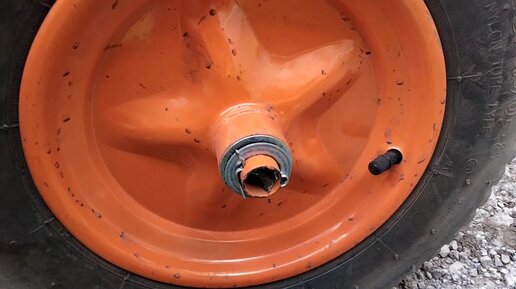 Ремонт колеса садовой тачки. Как снять колесо.