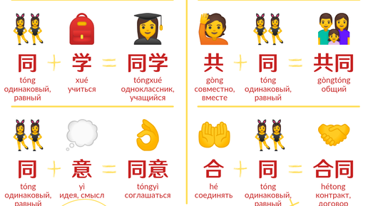 Слова с иероглифом 同 tóng - одинаковый, равный 👯♀️
