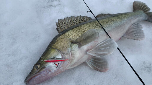 Трофейный судак на балансир со льда. Поклёвка и вываживание.