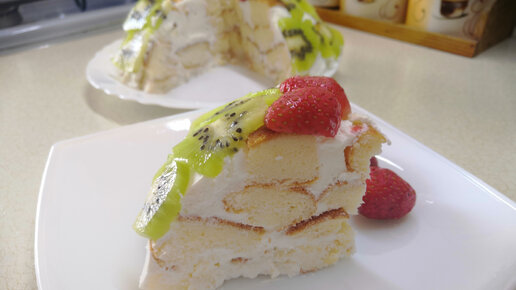 Воздушный бисквит, лёгкий творожный крем и свежие фрукты - этот чудесный ПП тортик можно назвать по-настоящему летним
