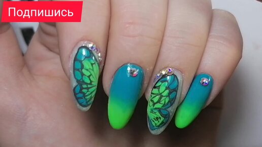 Коррекция ногтей себе. Дизайн бабочка стразы градиент укрепление