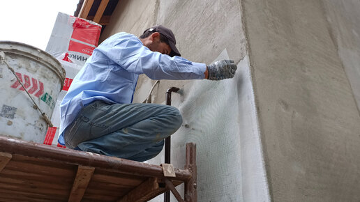 Базовый армирующий слой по минераловатной плите, в клей втапливаем Фасадную Стеклотканевую Сетку Bautex Krepix 2000, СФТК Мокрый Фасад