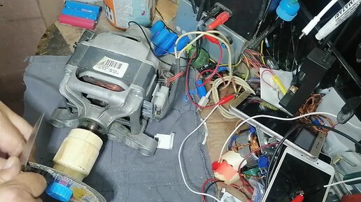 Эксперимент мотор от стиралки и акумулятор от гироскутера.