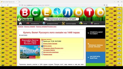 Купить билет Русского лото онлайн на 1449 тираж