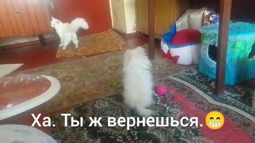 Галантный кот Ангора подружился со шенком шпица. 🤩