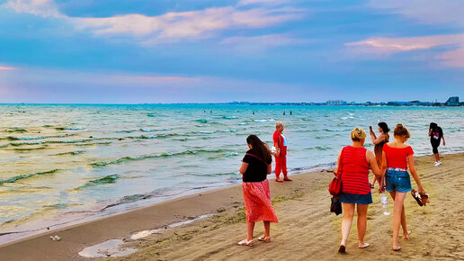 Анапа - люди уходят с пляжа. Морские качели сломаны. Брёвна на берегу. Июль 2022 - лето.